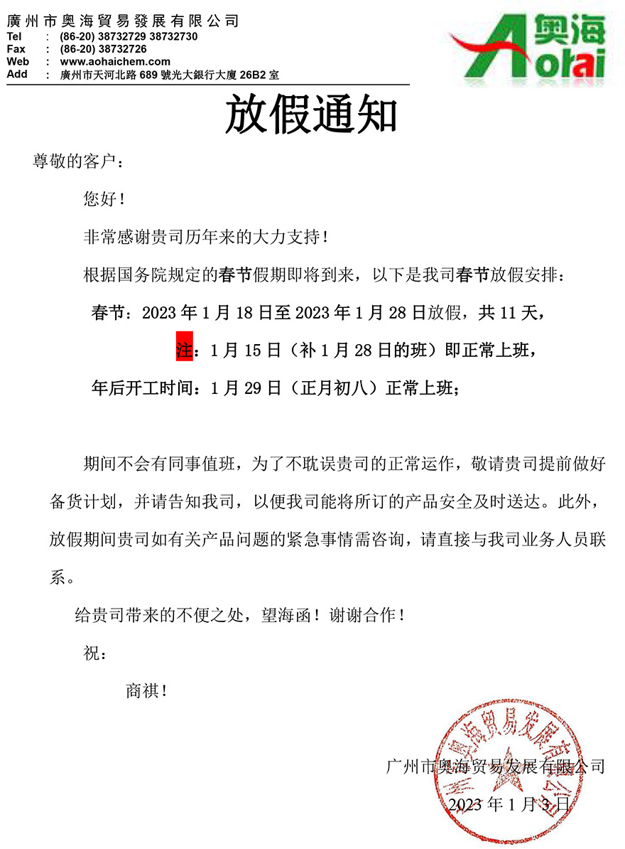 廣州奧海-2023春節假期通知